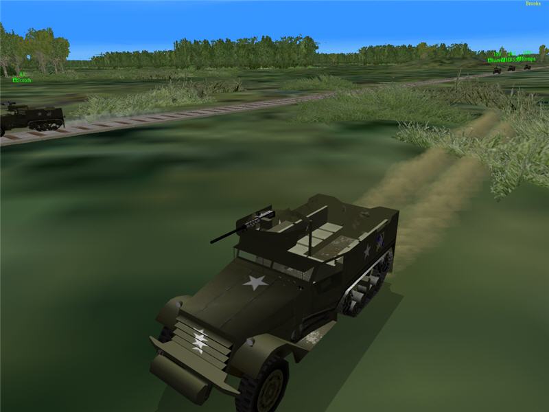 racing to v48 along the railroad tracks in M3's (half-track troop carriers)