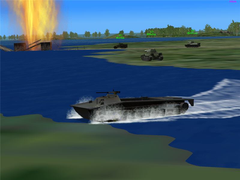 57, I grab an LVTA2 (an amphibious vehicle with troops). Here, I splash across