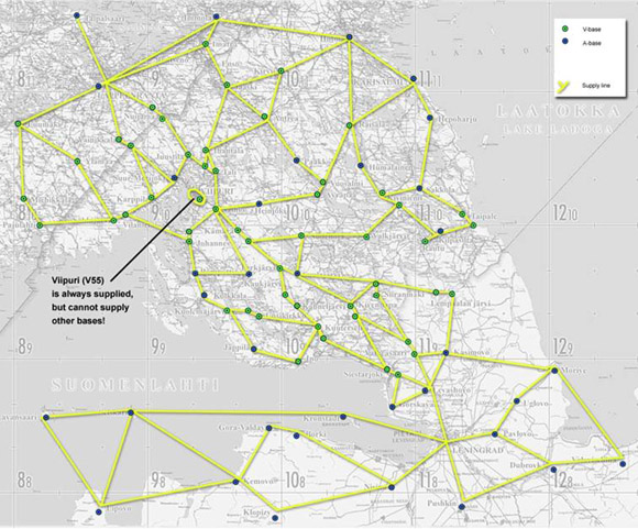 (Note: Viipuri City =V55, is never out of supply, but it does not supply to any other base!)
